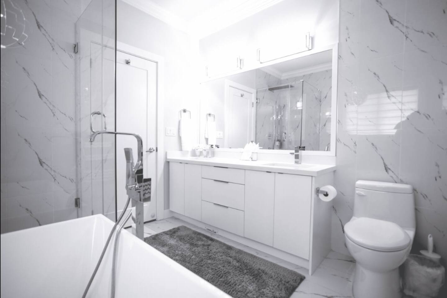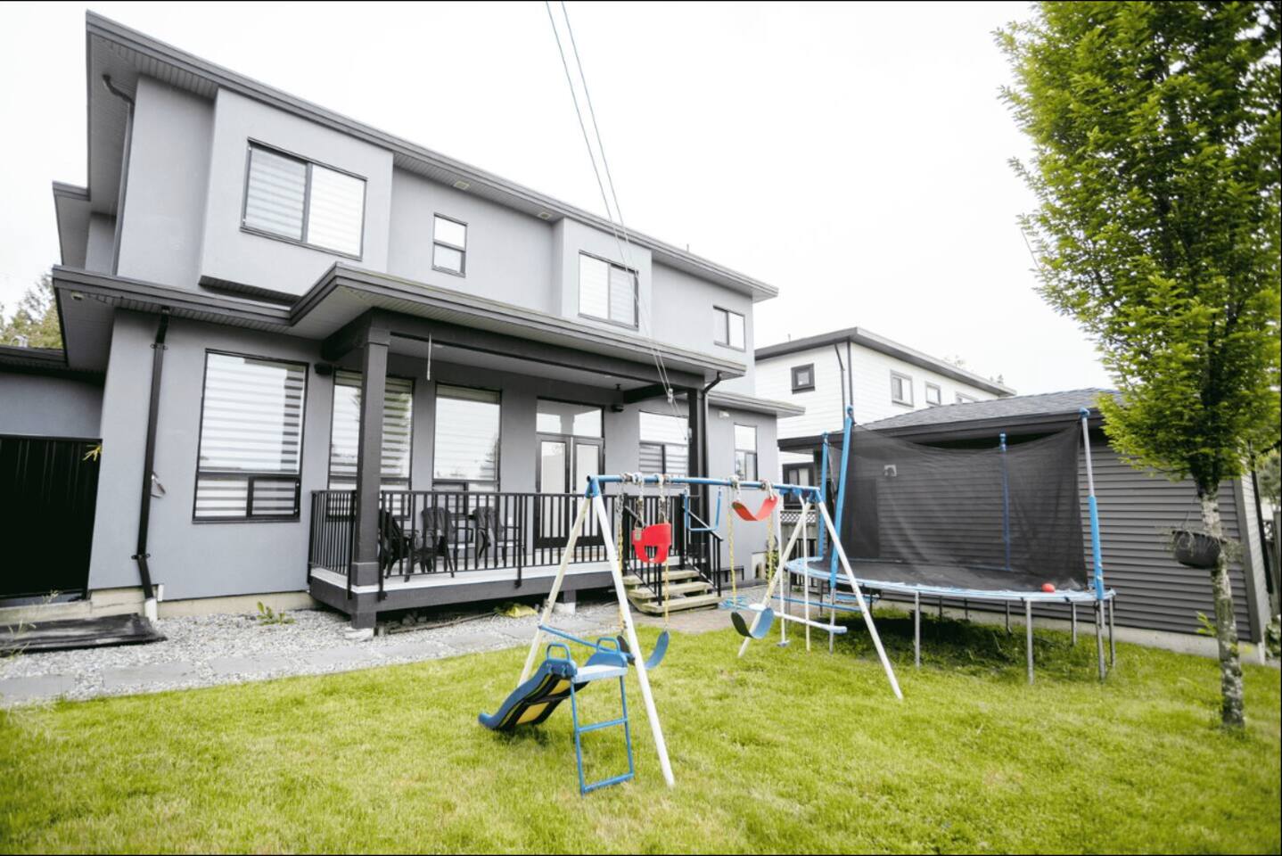 Welcome to our beautifully designed home that offers comfort and luxury for both short trips and longer stays! ✨ What makes this place special: 🍽️ Open-concept kitchen with LED lighting and walkout patio 🍳 Breakfast bar with 6 stools, high-end appliances 🍴 Secondary spice/chef's kitchen 📺 Family room with 55" smart TV and sectional pullout couch (sleeps up to 12 guests) 🚿 Washroom with stand-up shower 🛏️ Bedroom with double bed 🛋️ Living room with fireplace and dining table for 6 Top Floor: 🛏️ Master bedroom with walk-in closet and queen-size bed 🛁 Full washroom with double sinks, soaker tub, and stand-up shower 🛏️ Second master bedroom with king-size bed, walk-in closet, and ensuite washroom (tub/shower) 🛏️ Third bedroom with queen-size bed 🛏️ Fourth bedroom with queen-size bed 🛏️ Fifth bedroom with double-size bed 🚿 Washroom with stand-up shower Entertainment Room (Bottom Floor): 🍹 Wet bar with LED lighting 🎱 Pool table 🚻 Powder room 🧺 Laundry room 🎶 Built-in Bluetooth sound system MALLS/ GROCERIES🛍 🏬 Marine Gateway – 24 minutes 🏬 Tsawwassen Mills – 21 minutes ACTIVITIES ⛳ ⛳ Westfield Country Club – 19 minutes 🏊♂️ Sungod Recreation Centre – 5 minutes 🌳 Chalmers Park – 6 minutes 🌳 Morningside Park – 15 minutes TRANSPORTATION🛫 ✈️ Delta Heritage Airpark (YVR) – 16 mins by car ✈️Vancouver International Airport (YVR) - 22 mins drive ✈️Pitt Meadows Regional Airport (YPK) - 20 mins drive HOSPITALS🚑 🏥 Surrey Memorial Hospital – 13 mins drive 🚑Burnaby Hospital - 29 mins drive Enjoy spacious rooms, modern amenities, and great entertainment, this home is perfect for families, friends, or groups seeking relaxation and lasting memories. Enjoy all it has to offer!😄 Looking forward to hosting you! 🤩 ***Please review house rules before booking ***